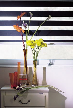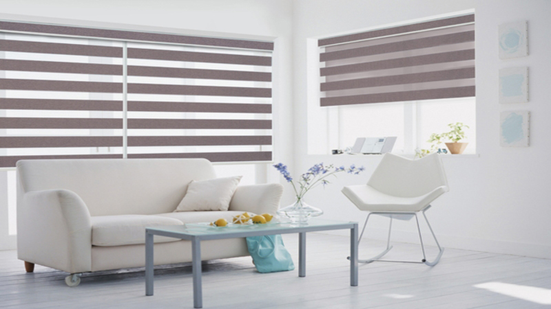 The Double View Roller Shade is the latest style of Window coverings where the striped fabric across two layers alternatively creates the open and closed effects. When raised, they stack compactly, giving you a clear, unobstructed view.